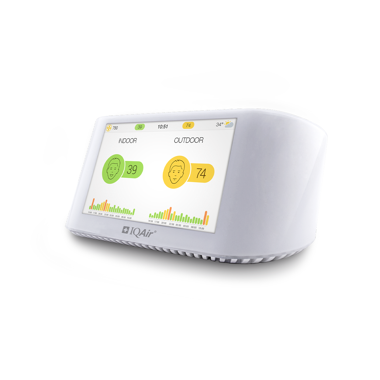 AirVisual Pro може да показва показания за качеството на въздуха едно до друго, така че да можете да сравните качеството на въздуха вътре с това на открито. Уредът ще сравнява показанията от сензора на Pro с тези на най-близката официална мониторингова станция, така че потребителите да знаят кога да проветряват. AirVisual Pro разполага със скала за индекс на качеството на въздуха от 0-500, която представя нивата на замърсяване на въздуха във лесен за четене формат. Цветно кодираните икони със скалата за качество на въздуха ви позволяват бързо да видите какво е качеството на въздуха.