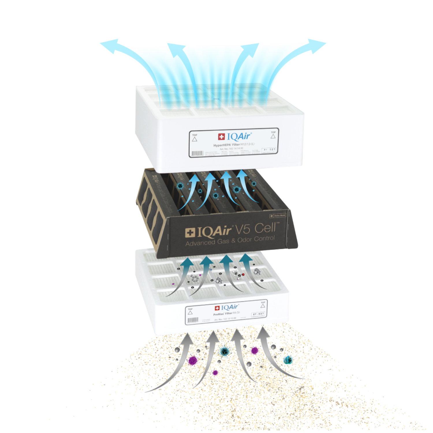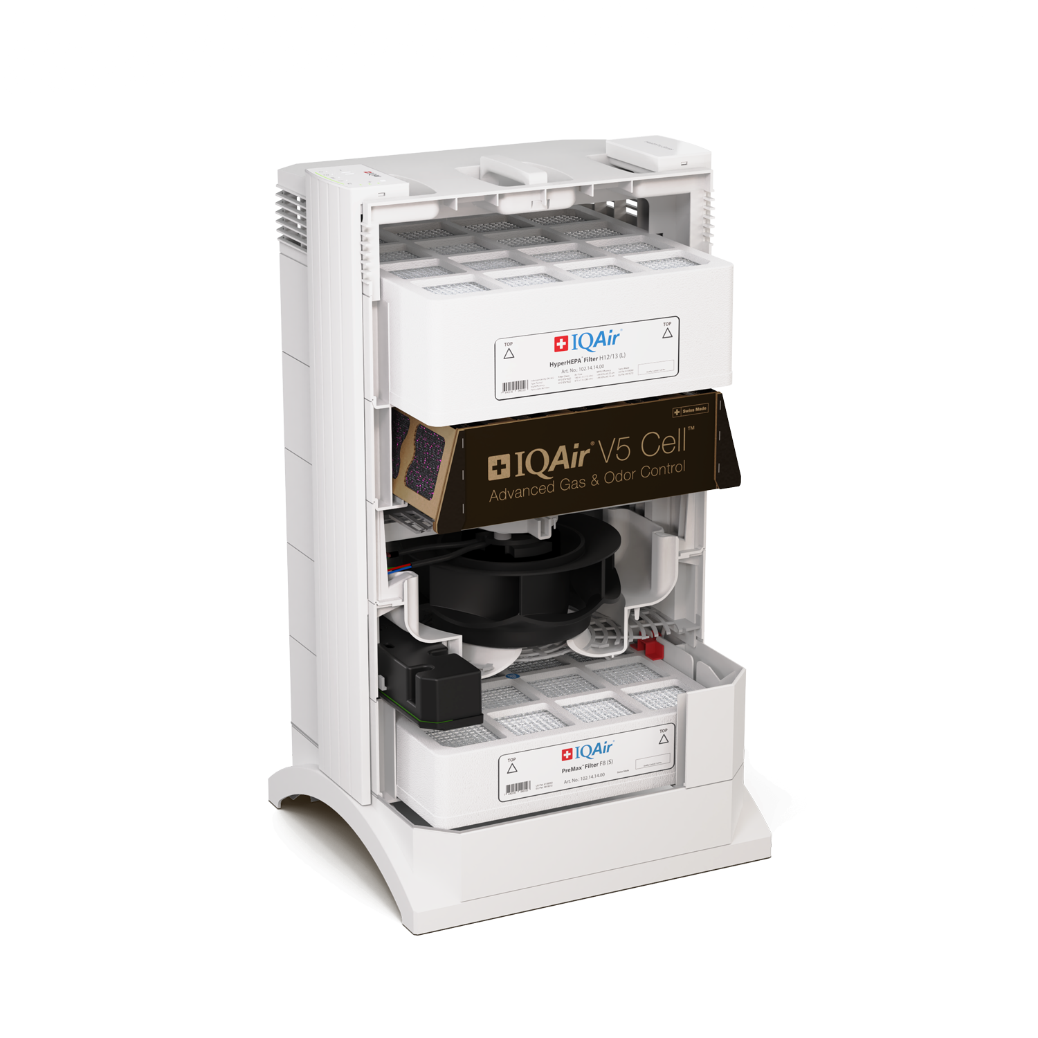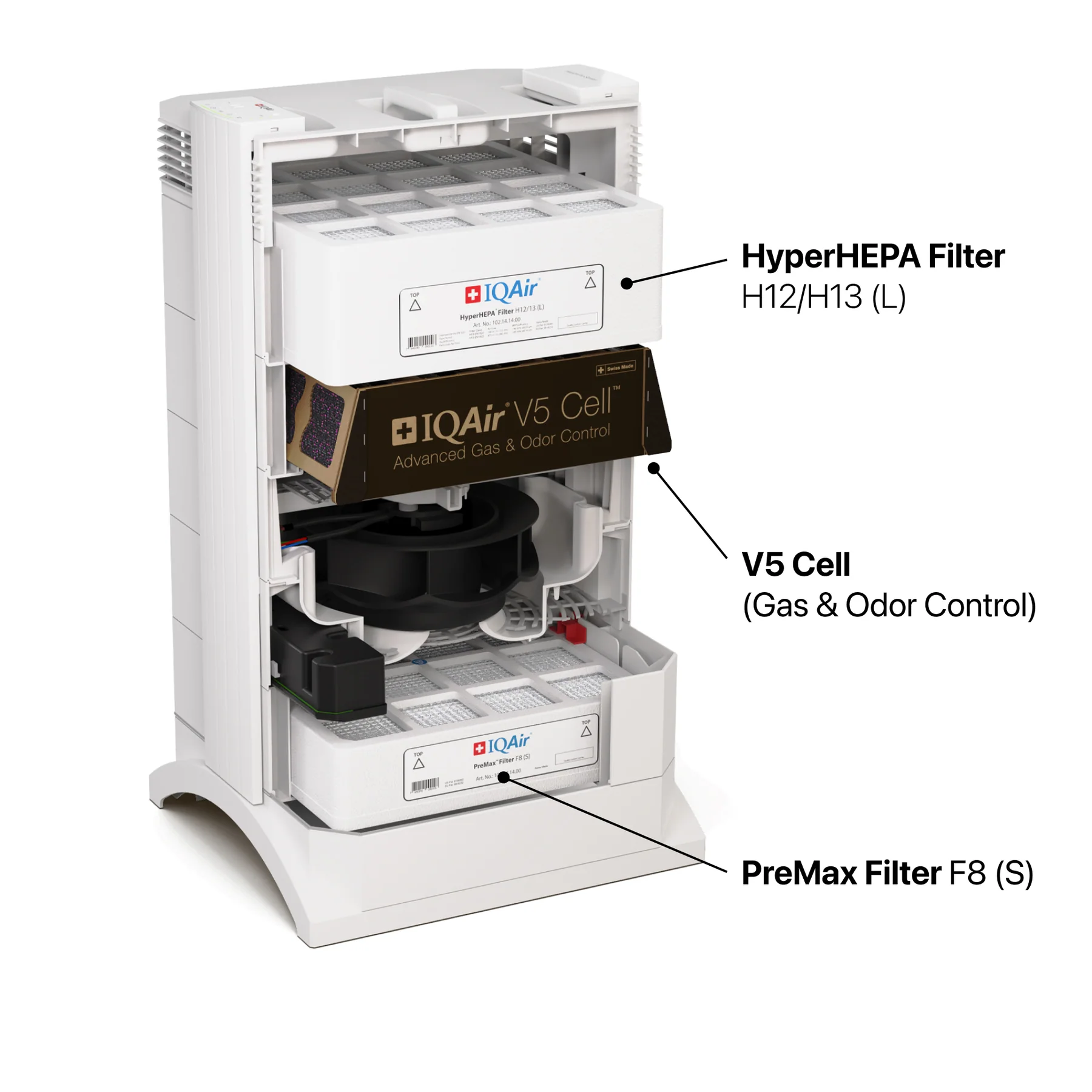 Включва PreMax предфилтър (F8), V5-Cell филтър за газове и миризми и HyperHEPA филтрация за ултрафини частици.